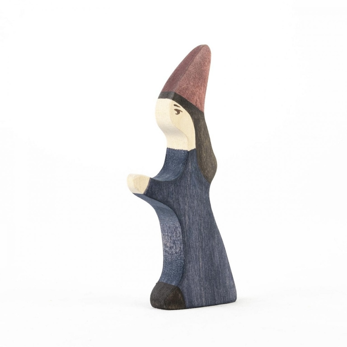 The elegant Mikheev Stepmother wooden figurine wears a long-sleeved maroon dress and a tall emerald green hat over her long black hair. She has a serene face – let your child decide if she’s a stepmother, an auntie, a wizard, or perhaps a lady-in-waiting. Our Stepmother stands at 12.5cm tall and is a wonderful size to pair with our Bauspiel Castles as well as Papoose Town Buildings, Town Houses and Woodland Houses.